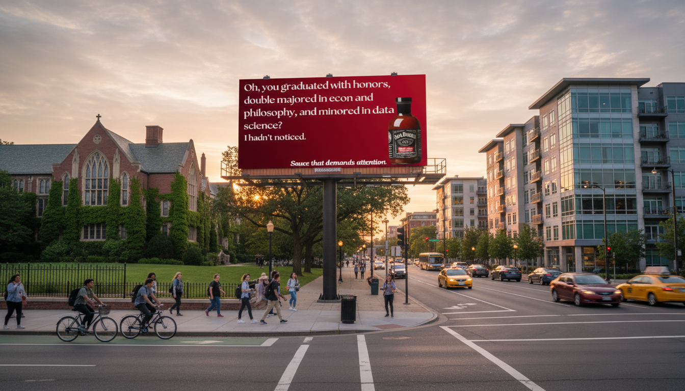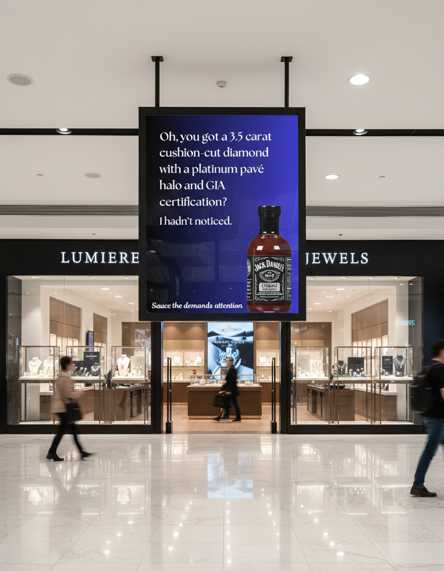 by sharpening our copy to be hyper-specific, we place ads strategically — from shopping malls and university towns to upscale markets and suburban neighborhoods — injecting unexpected humor into spaces that need it most.